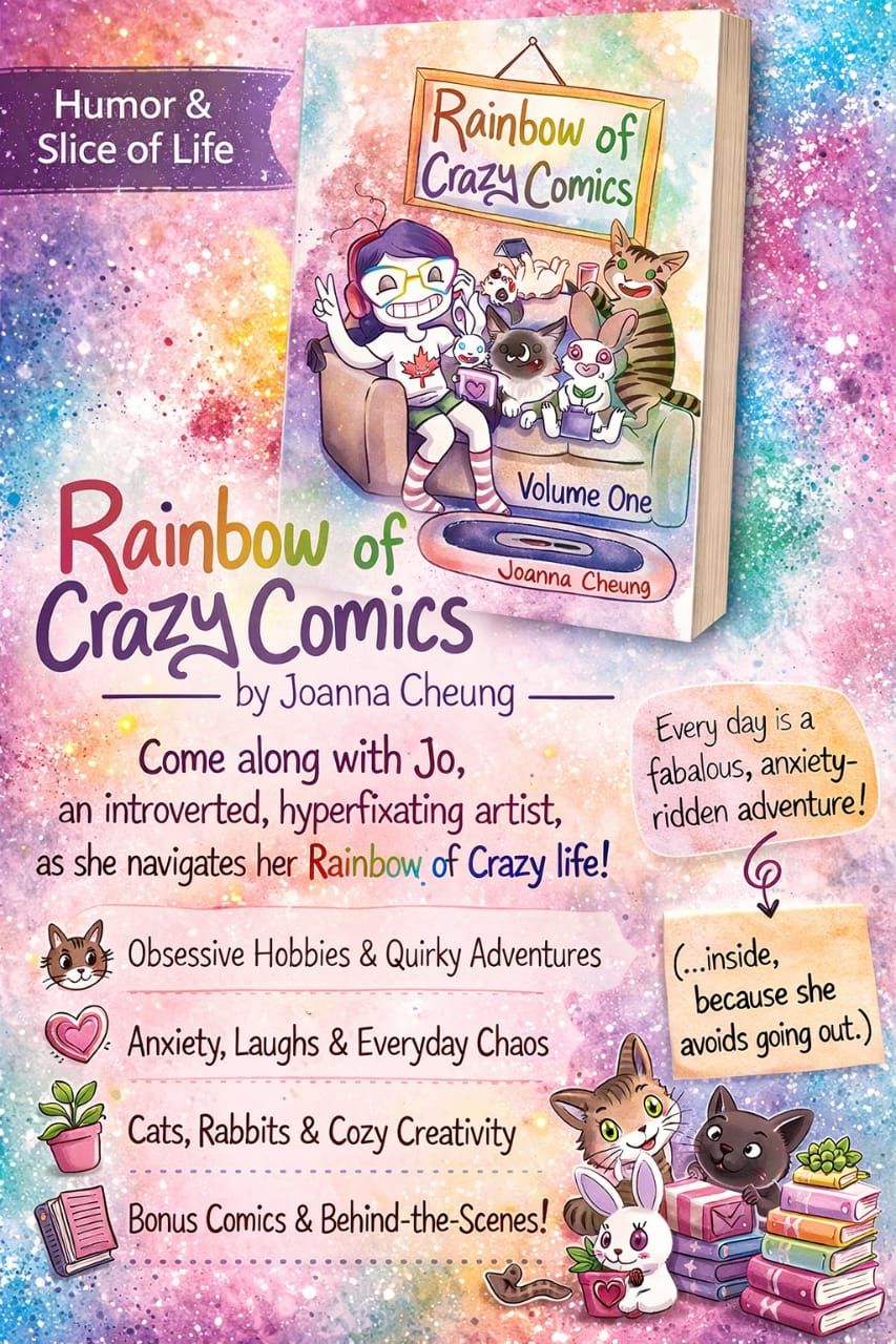 Come along with Jo, an introverted, hyperfixating artist, as she navigates her Rainbow of Crazy life - along with her cat and rabbit friends! What obsession will be their next? Gardening? Sourdough? Reading every romance book under the sun? Avoiding social situations? Every day is a fabulous, anxiety-ridden adventure! (.. inside, because she avoids going out.)
